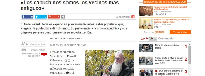 Entrevista a fra Valentí a “El Periódico”