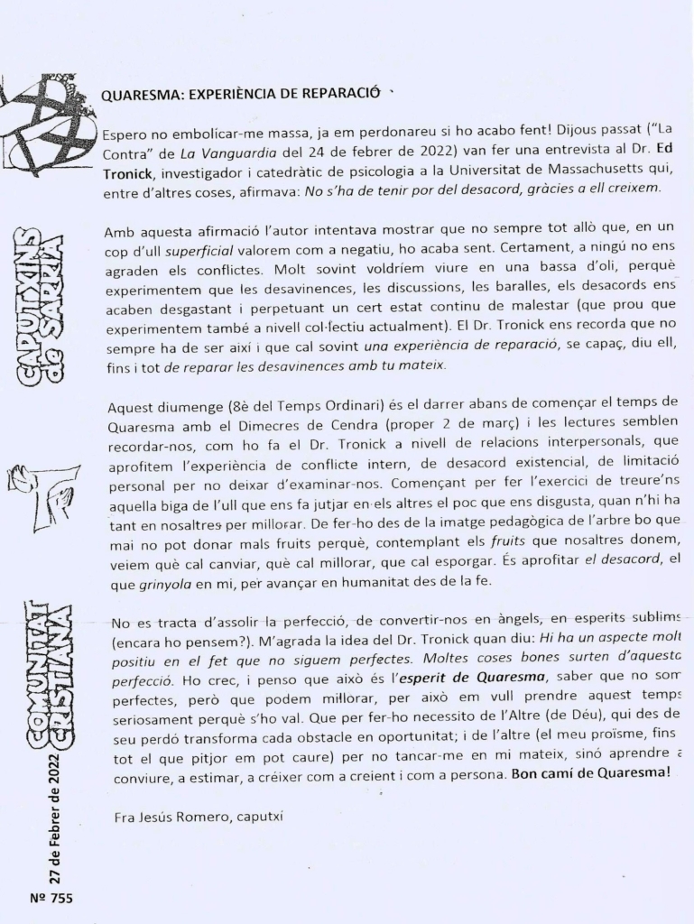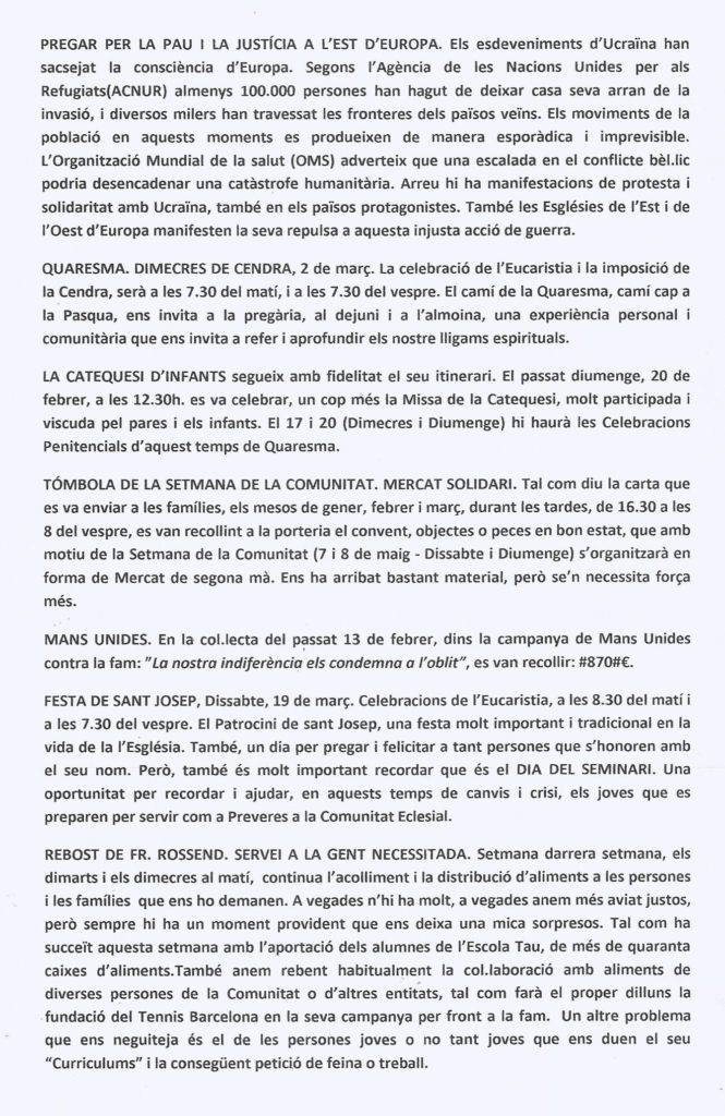 Pàgina inicial/Actualitat, Butlletí Sarrià, Vida caputxina/Butlletí de Sarrià – Febrer 2022 (2)