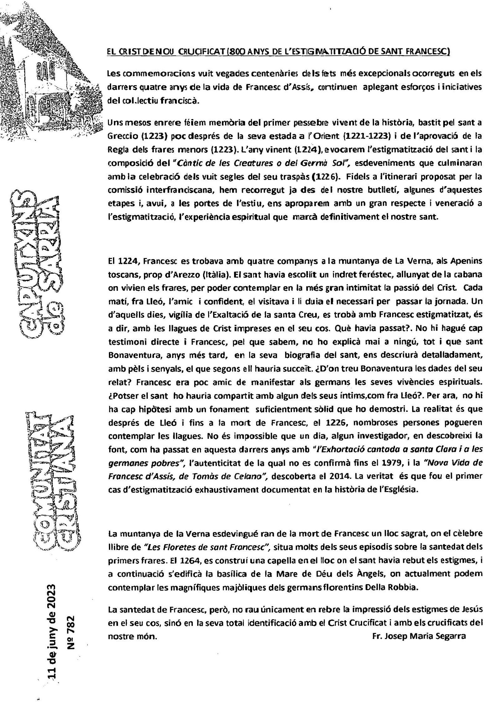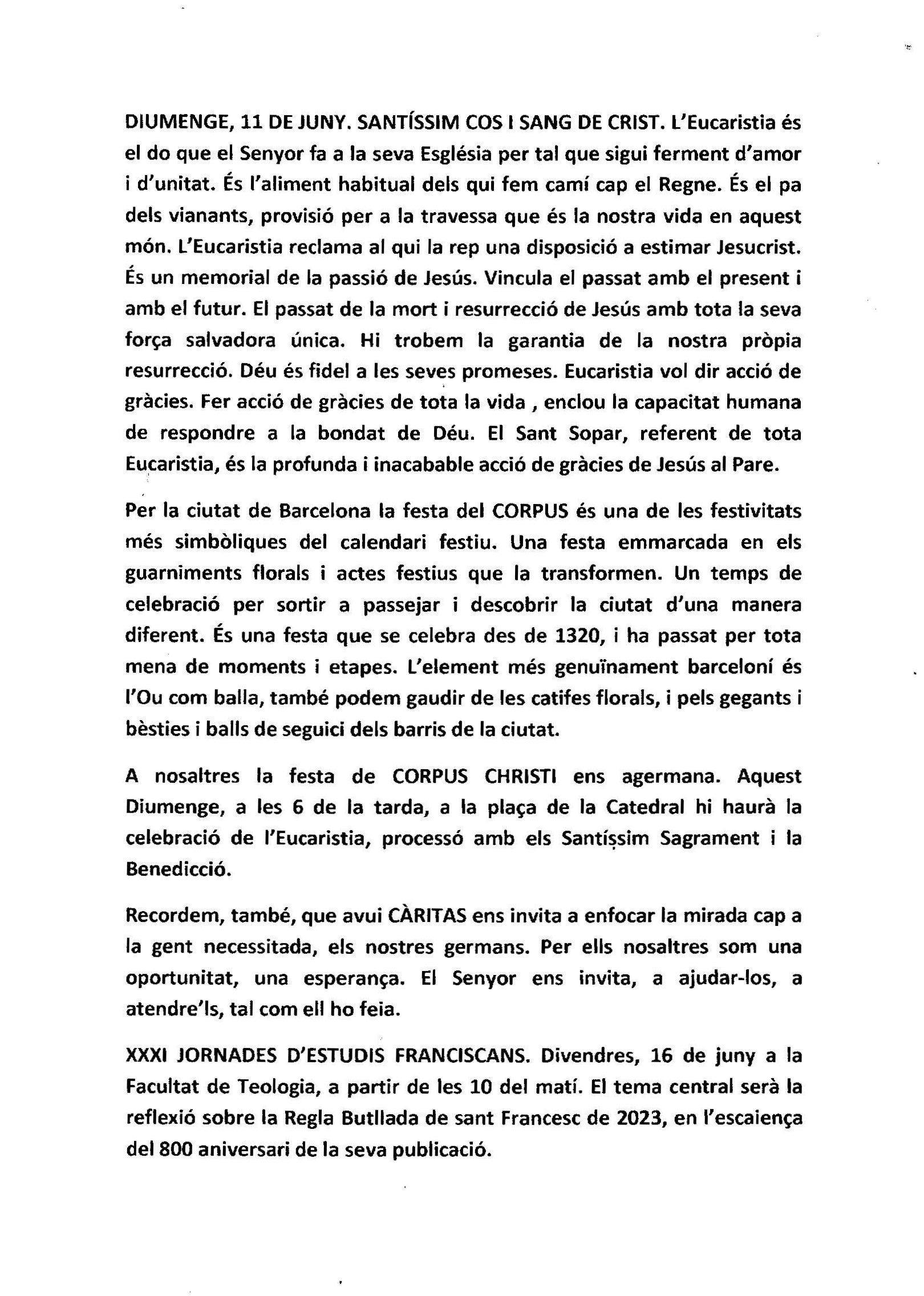 Pàgina inicial/Actualitat, Butlletí Sarrià, Vida caputxina/Butlletí de Sarrià – Juny 2023