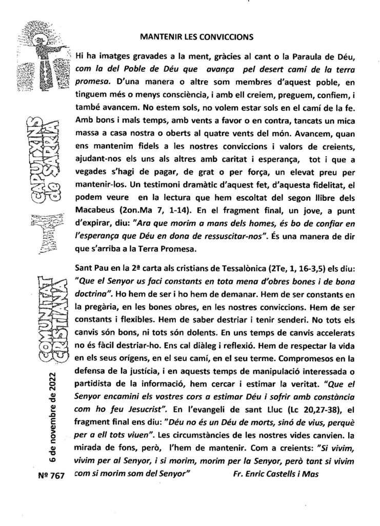 Pàgina inicial/Actualitat, Butlletí Sarrià, Vida caputxina/Butlletí de Sarrià – Novembre 2022