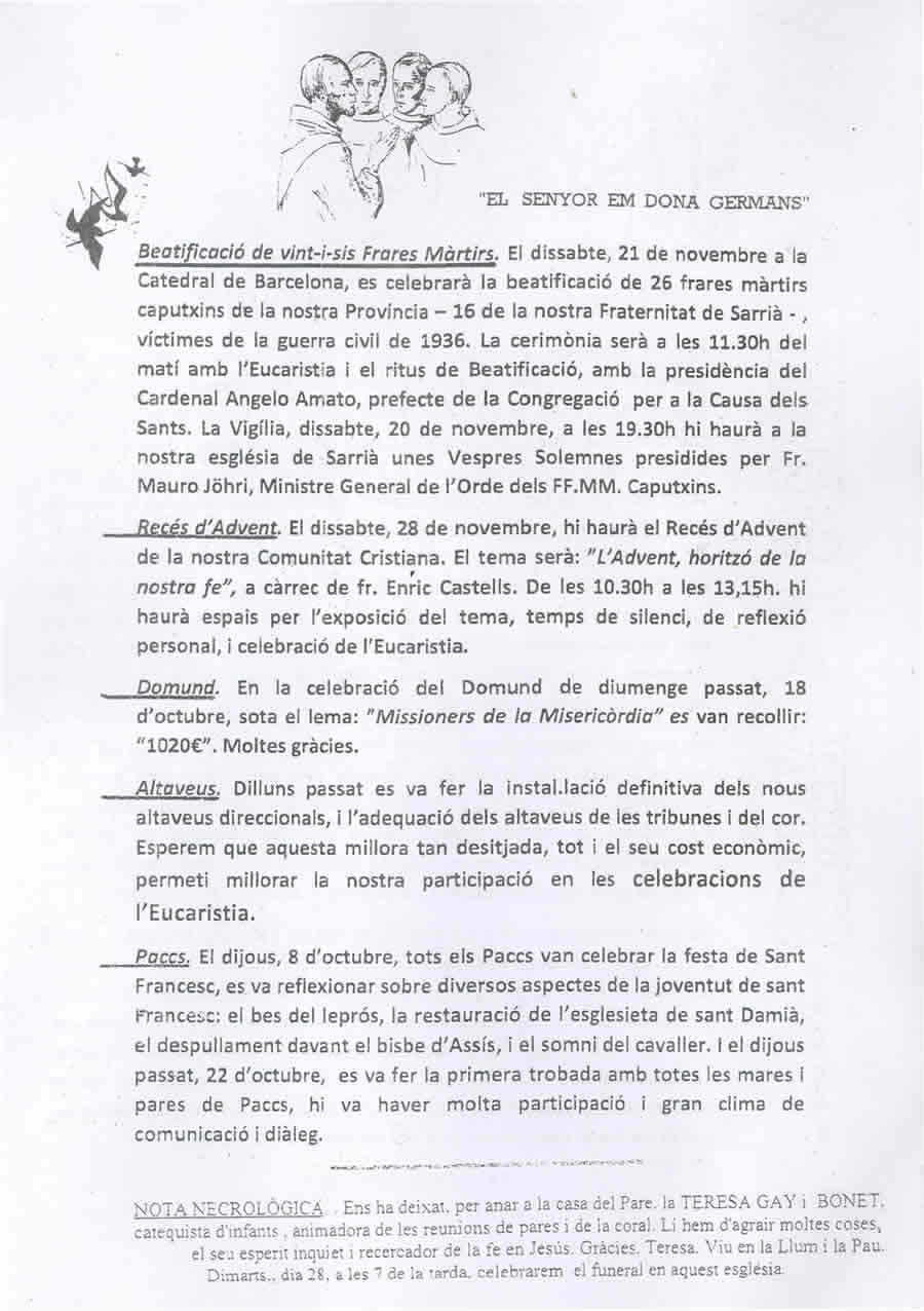 Pàgina inicial/On som/Sarrià/Butlletí Sarrià/Butlletí de Sarrià – Octubre 2015