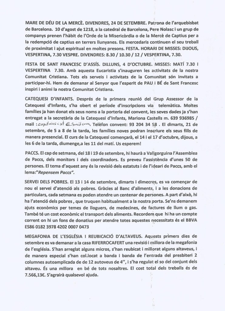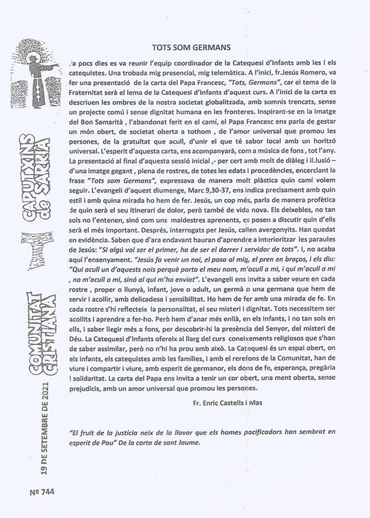 Pàgina inicial/Actualitat, Butlletí Sarrià, Vida caputxina/Butlletí de Sarrià – Setembre 2021 (2)