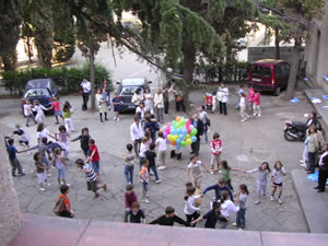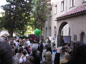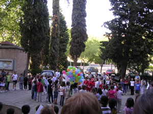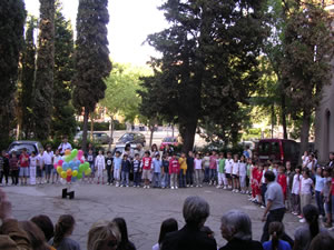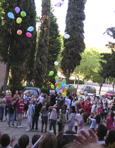 I com que els bons desigs han sortir de l’aula, els nens els han posat en forma de missatge dins de globus que hem enlairat al so d’una cançó africana que traduïda al català dels caputxins vol dir “que l’amor de Déu s’escampi per tot arreu”. El Pare Massana també ha enlairat el seu globus, molt més gran, perquè allà hi havia tots els desigs de la catequesi. I així, bocabadats, mirant aquell globus verd que s’enlairava, ens hem tornat a agafar les mans per cantar l’hora dels adéus. Com diu la cançó no és un comiat per sempre, sinó que si a Déu plau, l’any que ve el cercle refarem i fins i tot, potser, serà més gran!