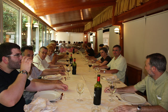 El dinar a Cal Déu, amb les conegudes patates farcides de la casa fou el veritable àgora on s’esplaiaren els assistents. El lloc i un dia amable en feren la resta. A mitja tarda la majoria va optar per completar la jornada amb un passeig amb el trenet dels volcans, d’altres allargaren el sobretaula. Uns i altres plenament satisfets, encara que dolguts per l’absència d’en Josep M. Garcia que una molèstia en el darrer moment l’impedí acompanyar-nos, malgrat n’era tothora present per la senyorívola cura de com ho havia dissenyat tot. Hem de repetir-ho, n’era el clam.