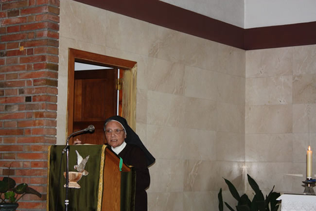 Com no podia ser d’altra manera la jornada s’encetà amb una celebració eucarística al convent de les clarisses de la Divina Providència. El pare Miquel Colom presidí l’eucaristia fent esment a les circumstàncies de l’encontre. Els cants facilitats als assistents marcaren el contrapunt a la missa.