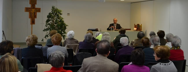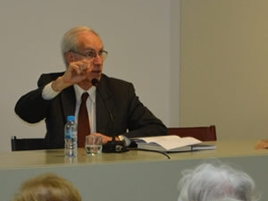 Després de les reflexions de caire general, passà a llegir i comentar poemes dels seus dos llibres recents: “La poesia de l’infinit. Mística i ciència” i “Trenta poemes sobre ciència i fe”. Va parlar de com la poesia ha expressat el sentit de petitesa humana en el cosmos, en Pascal o Milton; de la presència del vent en poemes de Leopardi, Costa i Llobera i Rilke, sobre la immensitat del paisatge; de la presència del vol en poetes místics, com San Juan de la Cruz, o la dualitat nit-migdia com a àmbits on sentir la plenitud del món. Pel que fa als “trenta poemes sobre ciència i fe”, va llegir diversos poemes en què la visió de la ciència coexistia harmònicament amb la de la fe, tot obrint-se a una realitat de fons més àmplia que la de la descripció científica.