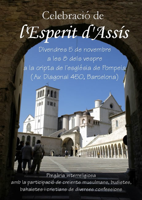 Com cada any, la Família Franciscana de Catalunya vam fer la pregària de l’Esperit d’Assís, seguint l’exemple dels encontres interreligiosos de pregària per la pau que s’han celebrat en aquesta ciutat d’Itàlia, bressol nostre, des de 1986. Enguany el lloc escollit va ser la cripta de l’església del nostre convent de Pompeia. Ens hi vam trobar el divendres 5 de novembre a les vuit del vespre més d’un centenar de persones, entre els quals hi havia franciscans i franciscanes de les diverses branques. Vam anar alternant pregàries de diferents religions amb música. Fra Jacint Duran, ministre provincial, va presentar l’acte després d’un breu assaig de cants. Després van intervenir els representants de les diferents religions: el budista Basili Llorca, el musulmà Jalil Bárcena, l’hindú Bakti Das i el cristià copte Ashaia el-Baramousy. Vam acabar recitant la coneguda “Pregària Simple”, tan sovint atribuïda a sant Francesc. Fra Jordi Cervera, guardià del convent de Pompeia, que havia engalanat la cripta amb símbols de les diferents religions, al final ens va dirigir unes paraules manifestant la satisfacció de la fraternitat per haver pogut acollir aquest acte i ressaltant les diferents activitats ecumèniques i interreligioses que s’apleguen regularment en aquest espai nostre tan ben situat al centre de la ciutat de Barcelona.